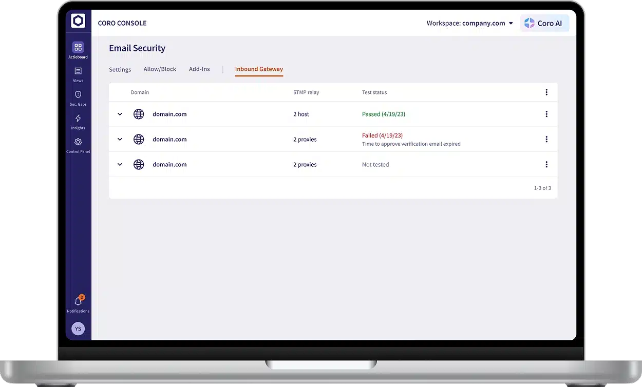 The Inbound Gateway add-on is a proxy that provides real-time detection and protection for incoming emails. It lets you intercept inbound emails and inspect them, allowing only threat-free or trusted emails to reach recipients.