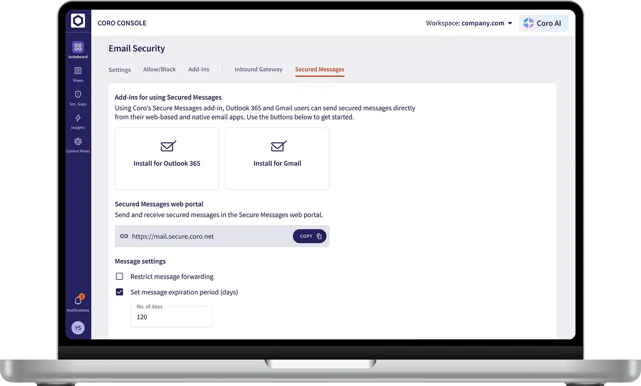 Experience advanced email protection that safeguards your business against data leaks and social engineering attacks with ease. Powered by Coro’s intelligent engine and Large Language Models (LLMs), the Email Security module automatically monitors, detects, flags, prioritizes, quarantines, and remediates the most advanced threats. Leveraging advanced LLMs increases phishing attack detection accuracy and strengthens the system's capabilities.